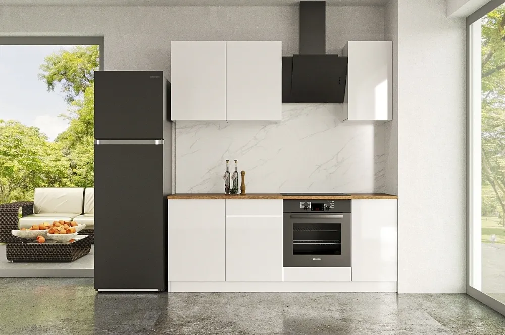 Ручки, столешница, стеновая панель, мойка, смеситель и бытовая техника продаются отдельно.